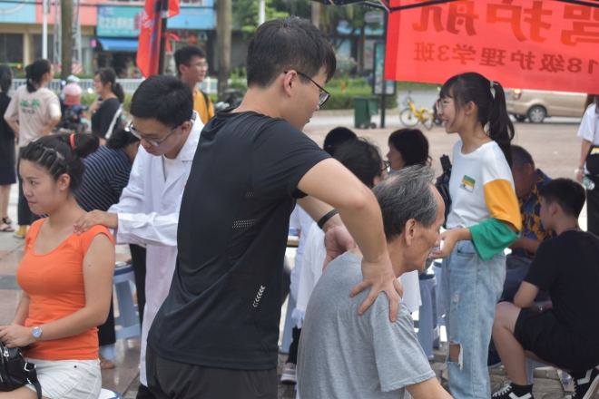 此次活动共分问卷、宣讲、摄影、义诊、后勤五个组。活动过程中,同学们各司其职。问卷组向路人发放有关急救知识的问卷调查表并收回;宣讲组充分发挥自己的所学知识,通过生动的方式,向周边的路人讲解了日常急救知识及技能;摄影组对各组的活动进行录制视频和拍照;义诊组为对周边路人进行测量血压、按摩;后勤组负责现场的布置,秩序管理以及一些善后工作。此次活动群众参与度极高,同学们的讲解和义诊获得了群众的一致好评。