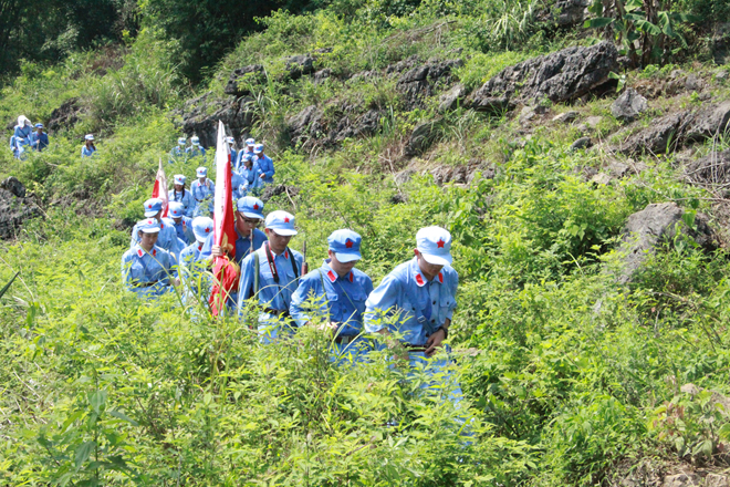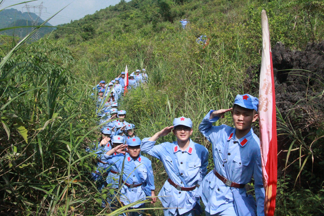 7月18日,为让实践队队员们深入学习解放思想、实事求是、开拓创新、百折不挠的百色起义精神本次实践以体验式教学为主,开展丰富多样的现场教学活动,感受不同的教学主题。重走红军路,实践队一行身着红军服,高举军旗,重走当年邓小平同志挺进右江的路线。炎炎夏日,在崎岖不平的“运枪小道”上实践队队员们相互帮助与鼓励,不屈不挠,勇往直前,感受红军路上先辈们的百色起义精神;红军船上唱红歌,通过简单的歌词与曲调感受振奋人心的力量;参观右江苏维埃政府旧址,并模拟“右江地区第一届工农兵代表大会”召开情景,让队员们如临其境,仿佛回到当年烽火连天的革命岁月,无数次被先辈们的伟大爱国精神所感动。
