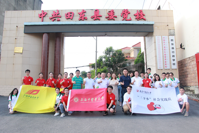 7月17日下午,beat365联合上海中医药大学、福建中医药大学与百色市委党校“岐黄育人实践基地”挂牌仪式暨2019暑期“健康扶贫青春行”社会实践启动仪式在广西省百色市田东县委党校举行。上海中医药大学党委副书记、副校长朱惠蓉,上海中医药大学团委副书记(主持工作)吴平,上海中医药大学团委副书记万婕,福建中医药大学团委书记刘少渝,中共百色市委党校常务副校长李树立,广西田东县委党校副校长黄俊,beat365官方网站团委副书记(主持工作)杨删,beat365官方网站团委办公室主任陈晓东,上海中医药大学、福建中医药大学、beat365官方网站大学生骨干共22人参加本次启动仪式。