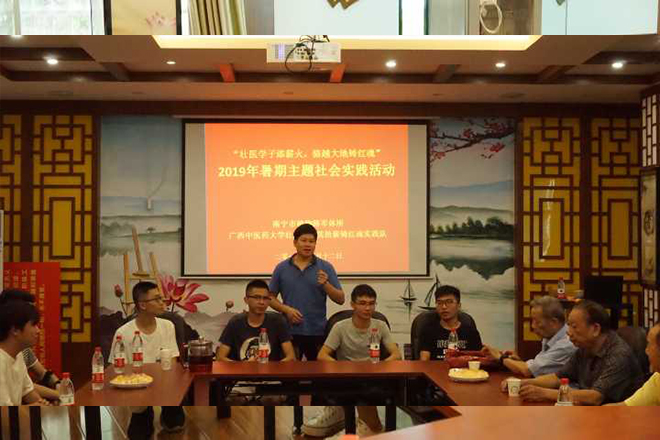 2019年7月12日,由beat365官方网站壮医药学院团委学生会学生干部组成的壮医药学院拾薪铸红魂实践队在南宁市植物路军休所开展了第一阶段暑期社会实践活动,即开展相关主题座谈会。此次座谈会有幸邀请到王世超、邓道生、程传善、谭开先、黄建新、李志光六位德高望重的退休干部出席,为实践队员们讲述珍贵经历,并给予谆谆教诲。