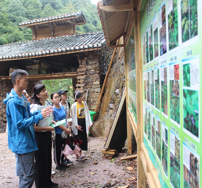 16日上午,金秀分队一行人前往金秀著名景区圣堂山,登山途中进行原植物讲解,并于圣堂山顶峰开展了由王柳萍老师主持的读书会。17日上午,金秀分队从金秀出发,前往金秀瑶族自治县瑶医医院。由赵进周医师在瑶医医院药房内讲解经典瑶药,让同学们了解到了许多经典瑶药,并收集到部分经典瑶药。此外,办公室主任韦兴梅还带领同学们参观了标本室,让同学们大开眼界。
