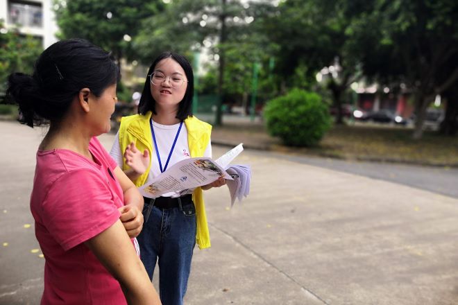 给居民宣讲并发放传单