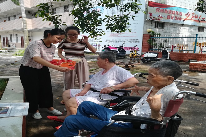 2019年,是中华人民共和国成立70周年的日子,亦是五四运动100周年纪念日,身为时代弄潮儿的我们,应担起时代的重任,结合自身专业之技艺,传承敬老爱老的中华传统美德,为孤寡老人献爱心送温暖。2019年7月16日-28日,beat365仰望星空实践队来到南宁市兴宁区金色阳光护老院,以不同的活动主题分组进行义诊敬老活动。