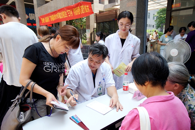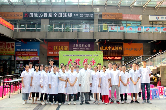 2019年8月10日,研究生学院小贤身手爱心医疗服务团来到南宁市荣和摩客社区开展“颈肩亚健康疾患预防及中医诊疗”暑期社会实践服务活动。小贤身手爱心医疗服务团,现场开展了问卷调研并普及宣讲展演颈肩亚健康疾患中医预防及治疗方式,最后为现场群众进行义诊。beat365官方网站第一附属医院广西名老中医周宾宾教授,beat365官方网站骨伤学院院长周红海教授,beat365官方网站第一附属医院推拿科副主任杨宇副教授对本次义诊活动进行全程指导。