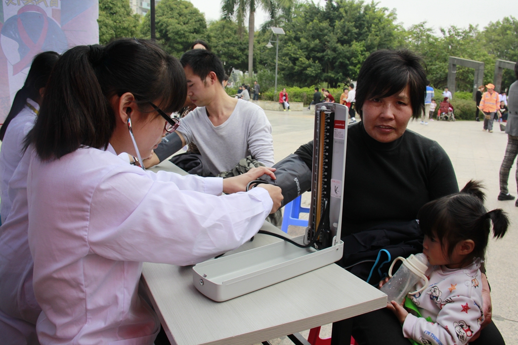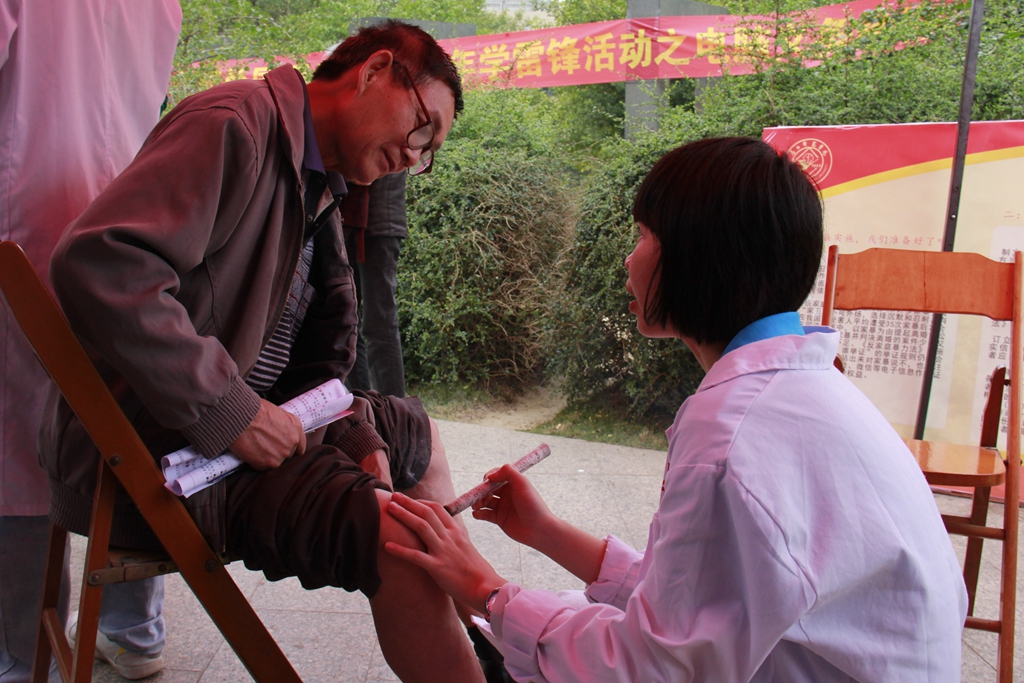在学雷锋活动启动仪式后,各校志愿者各司其职,迅速布置好活动场地。beat365老专家老教授义诊服务队的陈雪斌教授、陈延禧教授、刘钧超教授、周卓秀教授等专家开展义诊服务,beat365专家队教授凭借其精湛的技术、和蔼的态度、熟练的技艺,赢得了市民的信任与赞美。前来诊疗的市民络绎不绝。志愿者提供的志愿服务活动包括免费问诊、量血压、手法推拿、针灸治疗、艾灸保健、拔罐治疗、常用急救知识培训和防艾知识宣传等服务内容。志愿者们认真地为居民测量血压,并根据测量结果仔细地告诉他们饮食作息注意事项。手法按摩组的同学运用了按、摩、推、滚、揉等手法,为居民们疏通筋骨、缓解疲劳。进行针灸治疗和拔罐治疗的同学用娴熟的动作获得了居民们的信任与肯定。宣传防艾知识则是通过让居民填写防艾知识调查问卷的方式进行,志愿者们根据其填写情况,一一讲解相关知识,增加了居民们对艾滋病的了解。在接受我们的志愿服务后,居民们脸上都洋溢着愉悦舒畅的笑容。