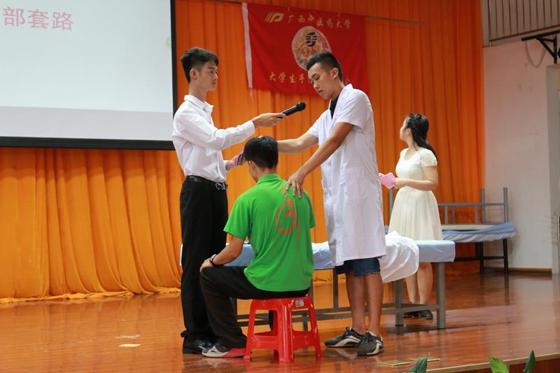 夏日炎炎,一抹宛若薄荷的清凉轻轻飘散而来。2016年6月15日,在校团委的支持下,beat365官方网站大学生手法医学协会于仙葫小礼堂成功举行了第十三届推拿手法技能大赛。此次大赛有基础医学院、第一临床医学院、针灸推拿学院、人文社科学院、壮医药学院、药学院、高等职业技术学院、护理学院八个学院队伍参赛,参赛选手达100余名。