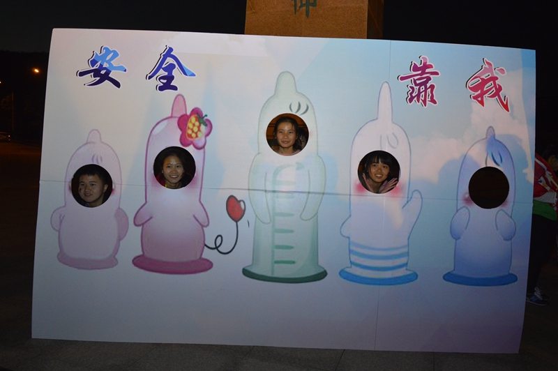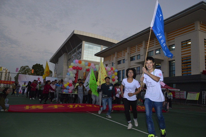 在前期的宣传中,本次活动共招募参与人员近二百人,得到了全校广大师生的积极响应。活动当天,参与人数超乎预计,艾滋病知识的宣传也卓有成效。活动伊始,校团委陈晓东老师开幕致辞指出,大学生处于性活跃阶段,谈情交往是普遍存在的现象,做好预防艾滋病的工作既能保护自身,也能保护他人。开展121为“艾”马拉松荧光夜跑活动,用荧光点亮生命,用爱传递能量。开幕结束,全体参与人员用荧光粉、荧光棒装饰自己,点亮校园;大家用各种防艾标语积极响应我们的防艾口号,寻找路人在防艾标语牌上签名,为防艾事业助力。最后,全体人员汇集在足球场,摆出红丝带及“12�1”的形状。后共同参与新颖的游园游戏,寓教于乐,从游戏中了解艾滋病相关知识。活动以此以采访的形式圆满结束,了解了参与者对活动的感受,大家有了解活动的意义并有所收获。