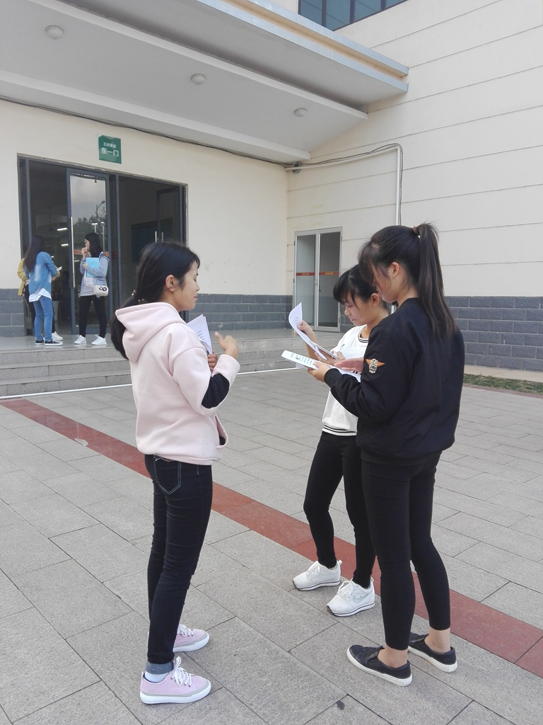志愿者在给路过的同学宣传活动