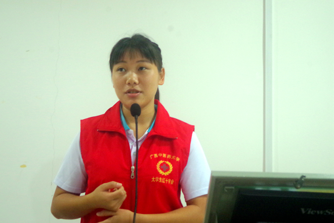 随后,讲师利用多媒体向广西外国语学院的学生讲解了止血与包扎的专业知识并亲自演示了止血与包扎的具体操作,确保每一位同学都能听懂、看懂。