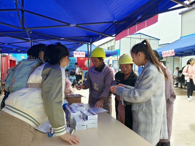 虽小雨淅淅沥沥,但测量血压、针灸、艾灸、手法推拿、拔火罐、刮痧、免费发放家庭备用药品及急救知识手册的义诊服务活动依然火热进行,现场秩序有条不紊。从工人们脸上洋溢的笑容可以看出,我们的义诊活动给他们带来了温暖,而志愿者们也在志愿活动中显得格外开心。