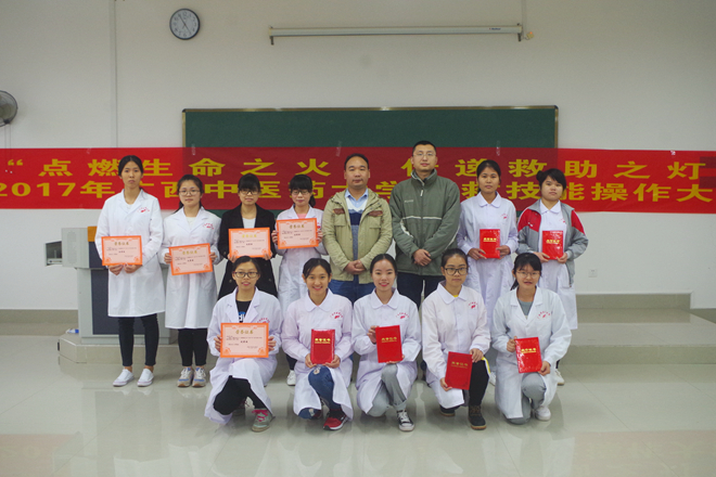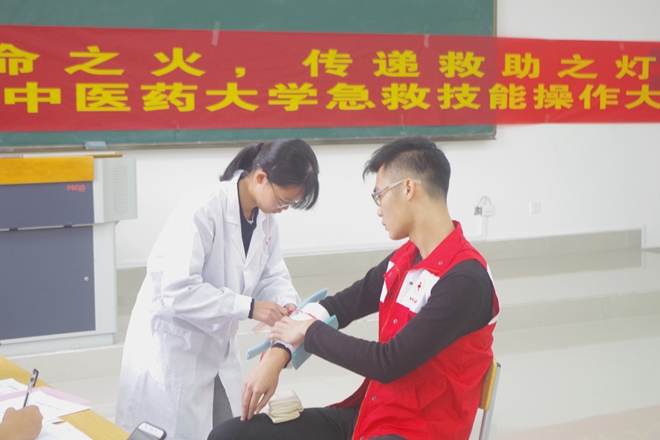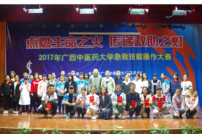 为了向广大学子普及应急救护知识,提高应急救护意识和能力,2017年12月10日,共青团beat365官方网站委员会、beat365官方网站大学生红十字会在beat365仙葫校区举办了2017年beat365官方网站急救技能操作大赛。出席本次大赛的嘉宾有自治区红十字会应急救援队老师、团委老师以及校内兄弟社团代表。此次大赛分为团体赛和个人赛,经过精彩角逐,共有10支队伍参加团体赛,29位同学进入个人赛决赛。