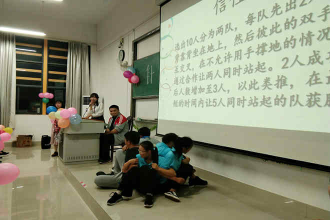 在交流会接近尾声时,信任靠、猜谜语等小游戏促进了大家的沟通与交流,其中“信任靠”游戏,不仅加强了大家的团队意识,而且培养了团队的信任感。