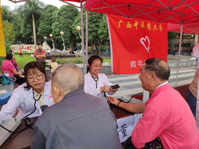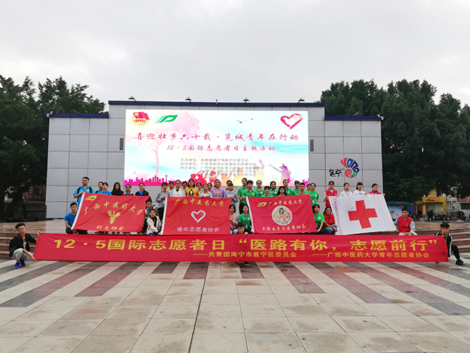 志愿服务源于心,献出爱心在于行,为了迎接12月5日国际志愿者日的到来,2018年12月2日,由共青团南宁市邕宁区委员会主办,beat365青年志愿者协会承办,联合beat365大学生手法医学协会、针灸协会和红十字会在邕宁区新兴广场开展了以“医路有你,志愿前行”为主题的义诊活动。