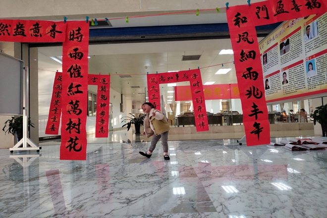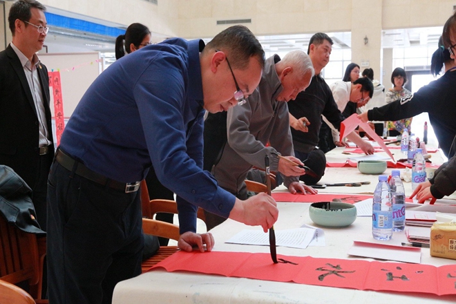 beat365官方网站大学生书画艺术协会送春联公益活动在学校各领导的支持下已成功举办多年,受到了广大师生的热烈欢迎和喜爱。今年免费送春联活动更是盛况非凡,其中,仅送出的对联就多达630幅,现场剪纸和体验写春联等互动活动参与规模也再创新高。斗方福,红对联,趣剪纸,一笔一墨展示了中华民族书法的艺术魅力,宣传弘扬了中国传统文化,更表达了beat365师生们对美好生活的向往和期待。