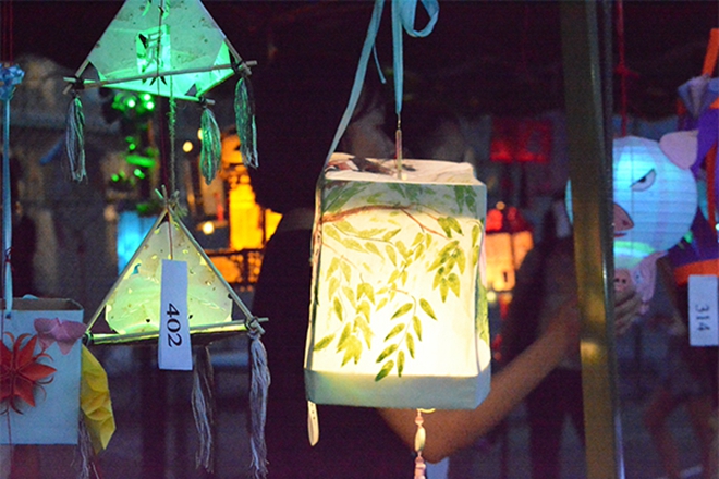 兔子灯、仙鹤灯、锦鲤灯....一盏盏精致美观、独特新颖、星星点点,将夜色渲染的更加温馨热闹。花灯错落有致、光影闪烁,同学们在花海中穿梭,三三两两停留、驻足观赏花灯,有的拿起手机记录着,并给自己喜爱的花灯投上宝贵的一票。