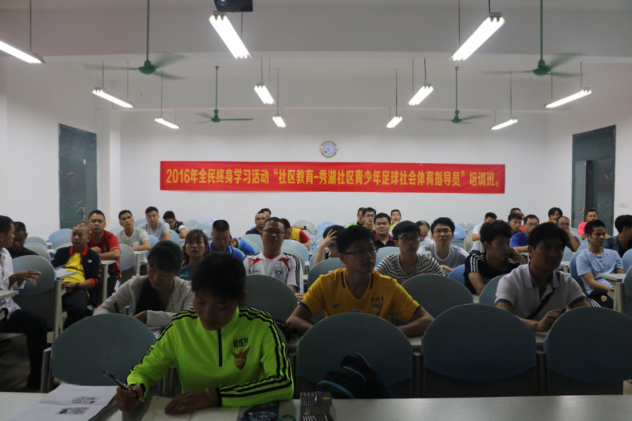 广西校园足球社会体育指导员培训班11月19日在beat365明秀校区举办。自2013年起,由beat365直属党委体育部支部与南宁市西乡塘区秀湖社区党委联袂创办的全民健身卫生站点就在beat365明秀校区全面铺开。本次培训班的举办,是站点工作由量的堆砌到质的拓展、服务质量全面提升的重要标志。