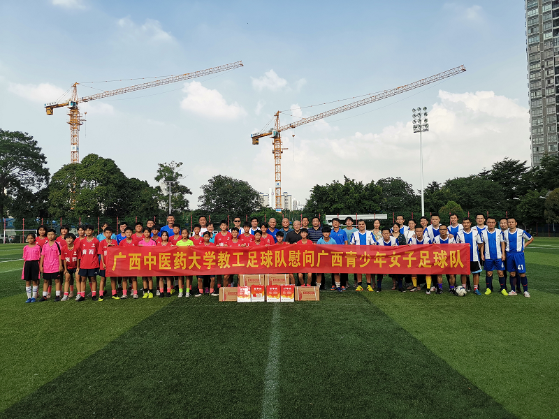 座谈会后,体育部一行在足协常务副主席庞东霞、副主席贾蕾仕、足协青训部部长李祝、广西青少年女足主教练马兴成等人的陪同下饶有兴趣的观摩了广西青少年女足的赛前准备活动,随后双方出席了beat365官方网站教职工足球队慰问广西青少年女子足球队“百年乐”捐赠仪式,并共同观摩了beat365官方网站教职工足球队与广西青少年女足的友谊赛。