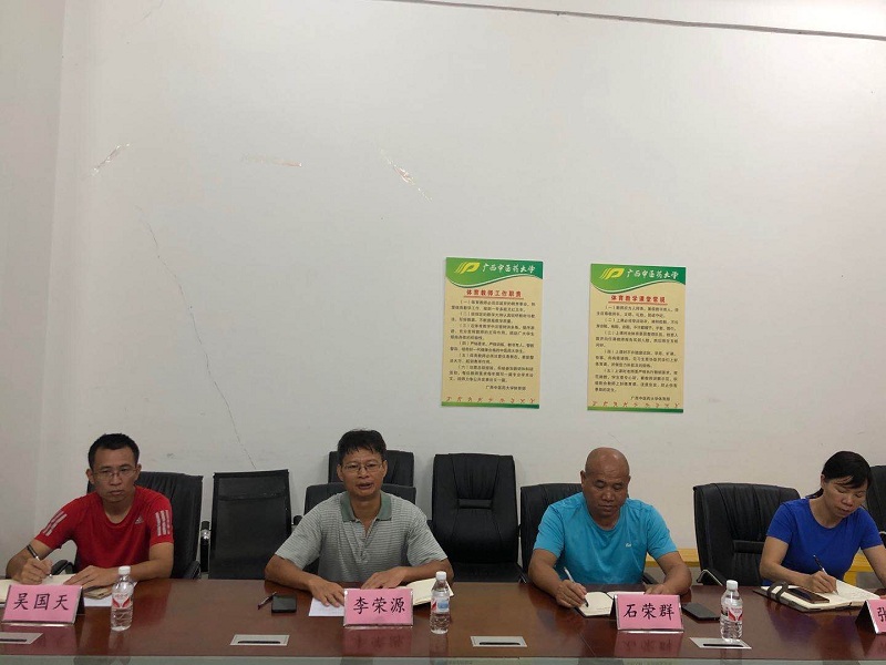 9月17日下午,玉林师范学院体育健康学院院长蒋宁、公体部主任林炜鹏、副院长李远华、王晓晨、办公室主任陈辉一行5人莅临我部门调研交流。体育部主任李荣源、副主任石荣群、办公室主任吴国天和学科办主任张艳参加了交流座谈会。
