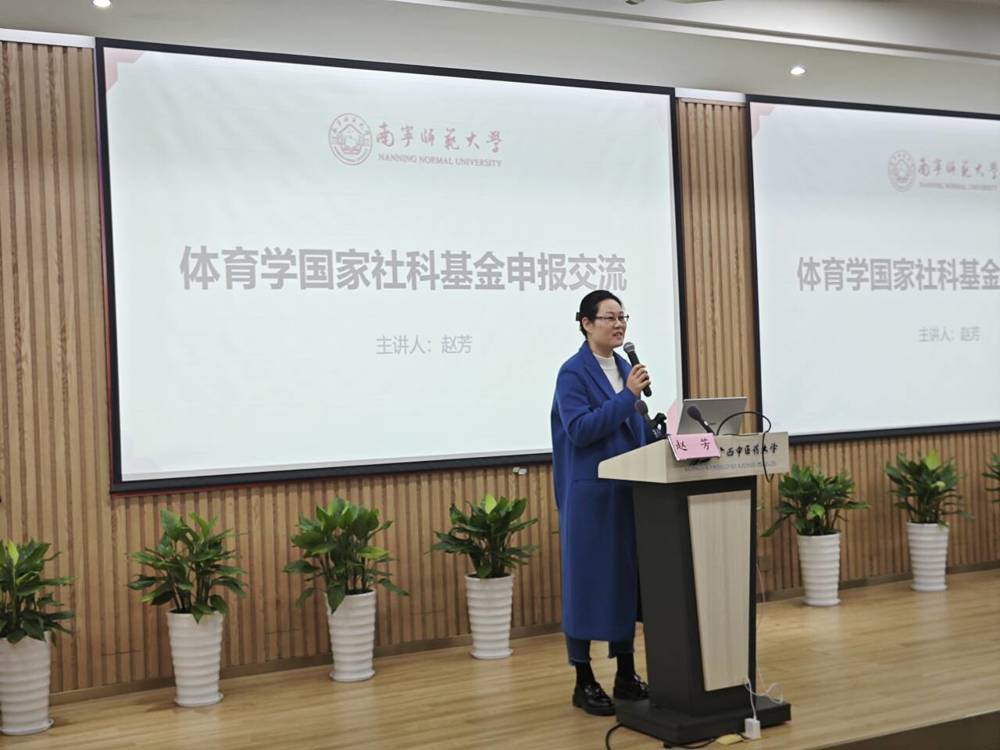 为推进我部国家社会科学基金申报工作,进一步提升教师对国家社科基金申报的内驱力,1月9日下午,南宁师范大学体育与健康学院院长、赵芳教授受邀在教师发展中心报告厅作了题为《体育学国家社科基金申报交流》专题讲座。讲座由体育部主任李荣源教授主持,来自各学院、兄弟院校的80余名教师参加了本次辅导讲座。