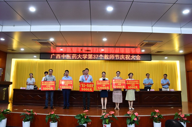 9月10日下午,在仙葫校区图书馆二楼会议厅,全校教职工齐聚一堂,隆重举行“beat365官方网站第37个教师节庆祝大会”。会上,何并文宣读了表彰名单,学校领导为获得2020年度优秀校级督学、2020年度学校记功人员、2020年度学校“先进工作者”、2020~2021年度“学生最喜爱的老师”、2020年学校优秀辅导员等共121位获奖者颁奖。其中,我教研室教师吴国天、覃月泉老师分别获得:2020教学成果一等奖、第八届全区高校青年教师教学比赛文科组一等奖。