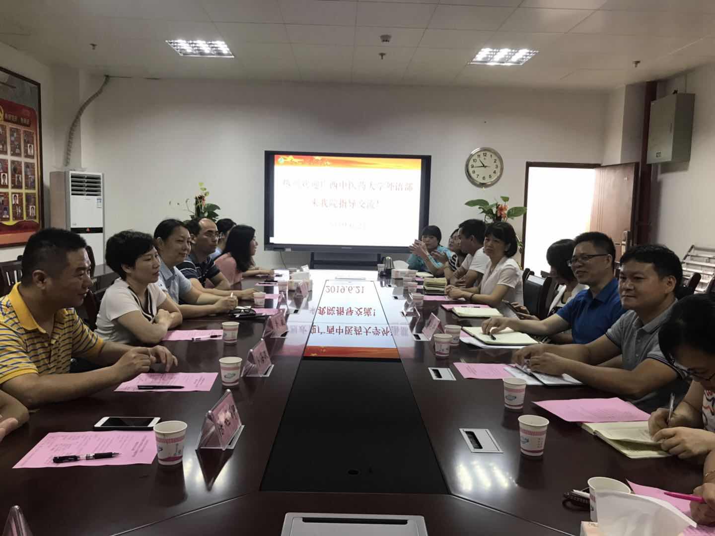 正值盛夏,烈日当空,在右江医学院国际语言文化教育学院潘廷将院长的热情带领下,我部一行兴致盎然地参观了右江医学院的校史馆,对右江医学院的历史有了更为深入的了解。随后,在国教楼党员活动室,右江医学院语言学院党总支李玉群书记致欢迎辞,对国际语言文化教育学院的发展历程,学院结构、师资队伍建设、党建工作等进行了简介;我部陈立群主任也介绍了本次来访交流的主要内容及随行老师的教学及学术特点;右江医学院国际语言文化教育学院潘廷将院长在交流中提出了在打造网络教学平台、办学定位、打造高水平教学团队及学科建设方面四个方面的重点内容,双方参会教师在讨论中产生了在教学及科研上的共鸣,深感通过此次座谈会,进一步加强了与区内兄弟院校相互间的交流与合作,为部门进一步加快发展提供了启发与借鉴。