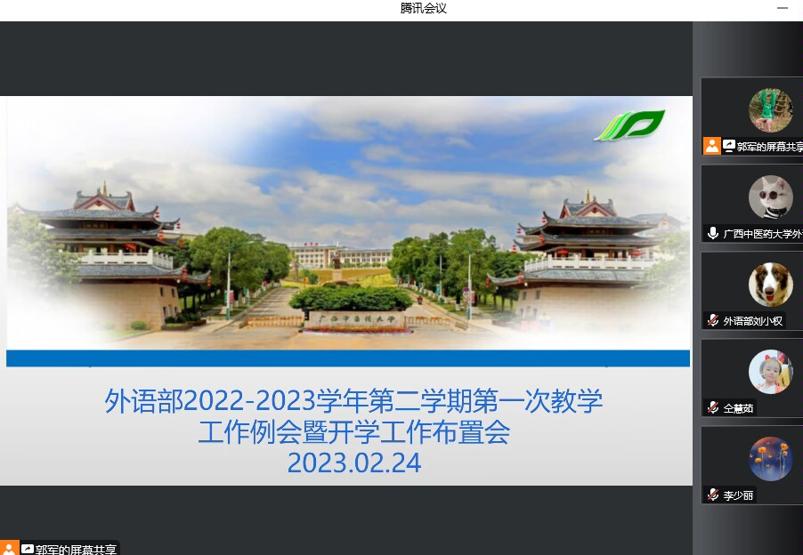 为扎实做好外语部2022-2023学年第二学期开学各项工作,确保新学期各项工作顺利有序开展,2月24日上午,外语部召开新学期教学工作例会暨开学工作布置会,会议采取线上方式进行,外语部全体在岗教师参加了会议,会议由教学办主持。
