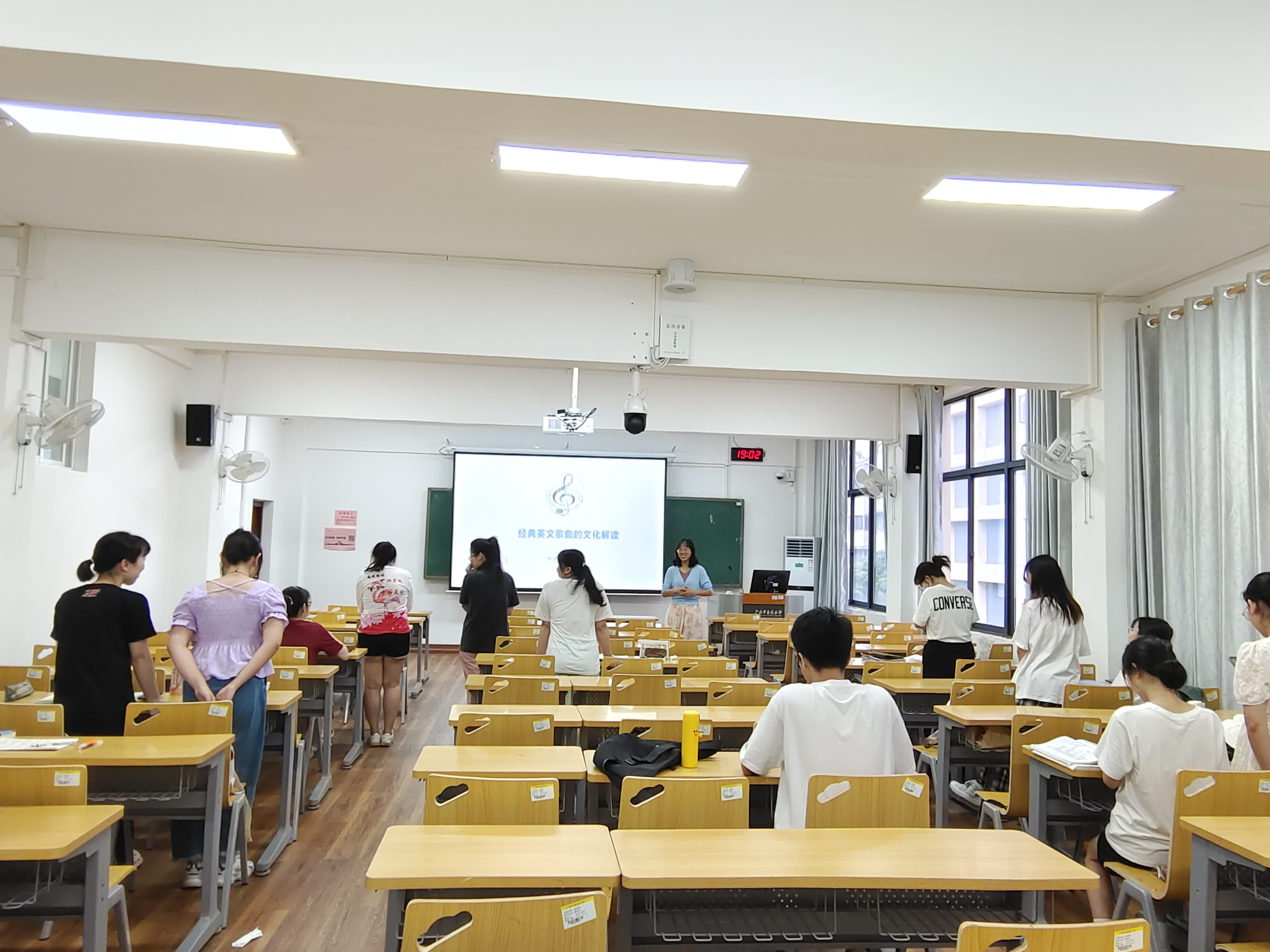 2022年5月28日晚,来自外语部专业英语教研室的罗梅老师在明秀校区时珍楼开展经典英文歌曲的文化解读讲座。来自本科、高职各年级各专业学生参加了本次讲座。