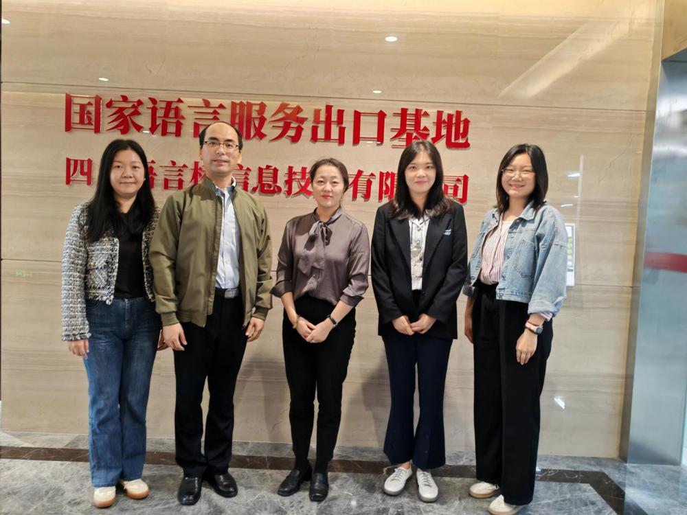 2023年10月20日上午,外语部副主任周锋、教务科研办主任何严、翻译学科秘书鲁蕴律一行3人赴研究生实习基地四川语言桥信息技术有限公司,看望在此实习的21级MTI研究生彭颗馨,并开展座谈。彭颗馨同学汇报了实习的内容、具体流程和实习感受等。周锋副主任希望同学克服困难,认真完成实习工作,借此契机加深对翻译行业的了解,为今后进入职场做好充分准备。