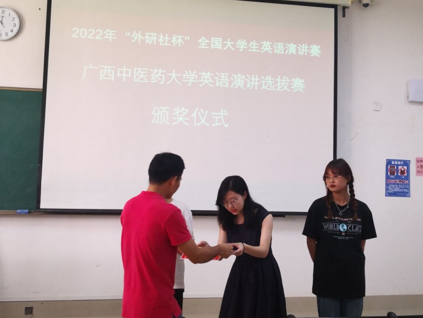 经过初赛和复赛的层层角逐,来自基础医学院2021级中医学5+3班杨棋妃脱颖而出,获得一等奖。二等奖分别由何菁菁、朱紫璇、李泽垚获得。三等奖获得者是杨春玲、谢海容、谢盈、彭子倩、岑双儿、廖准。外语部将组织获奖选手参加专门集训,优秀选手将代表beat365官方网站出战广西赛区决赛,争夺更高荣誉。