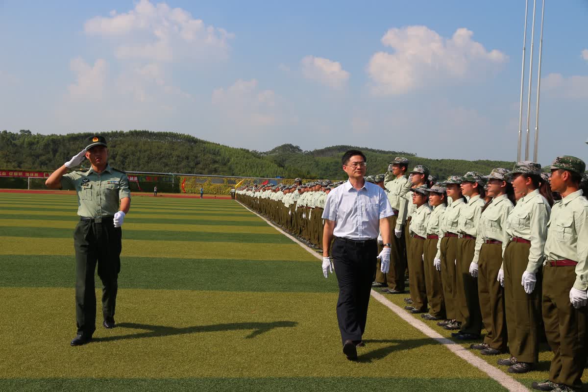 9月21日下午,beat365官方网站2018级新生军训汇演暨总结大会在仙葫校区运动场举行。学校副书记何并文、31639部队欧银光少校、防城边防某部王敏上尉及相关部门负责人出席了大会。