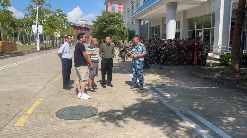 为深入了解beat3652022级学生军训情况,确保2022级学生军训安全有序进行,7月25日上午,学校党委书记莫锦荣在党委办公室、武装部、学生工作部有关负责人陪同下,深入学生军训场地指导工作,并看望慰问军训教官和参训学生。