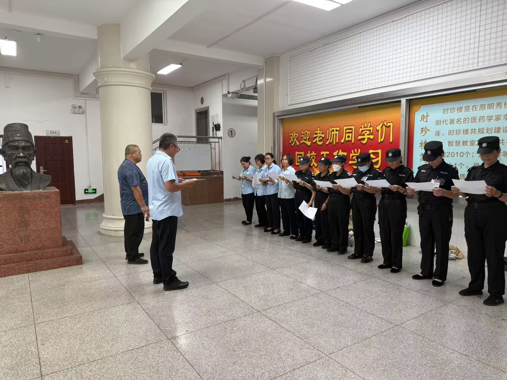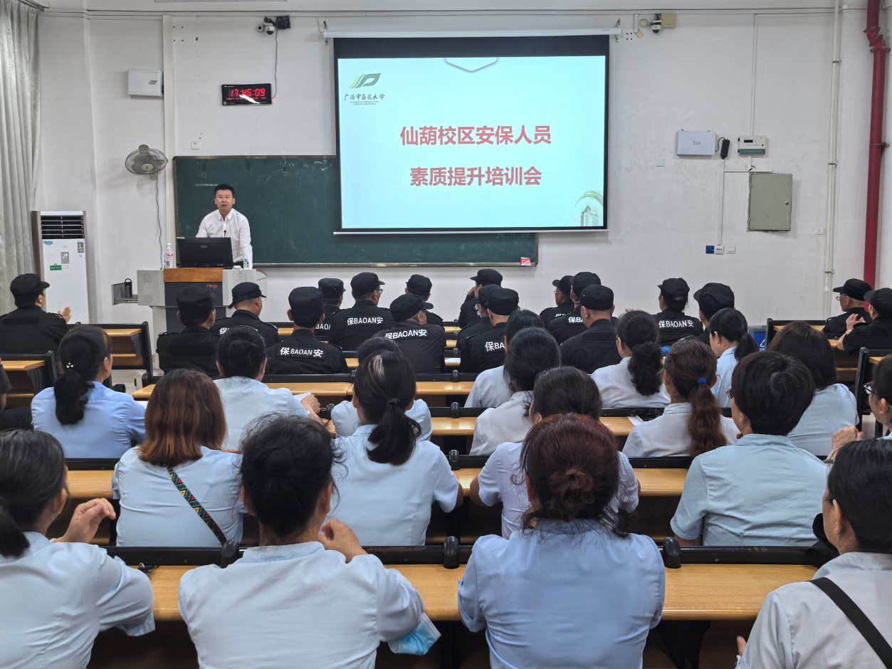 武装部(保卫处)开展保安、宿管素质提升专题培训 发布时间:2025-06-18 08:48:52 浏览次数: 次 【字体:小 大】 为筑牢校园安全防线,提升校园保安、宿管队伍专业化、规范化水平,6月14日,武装部(保卫处)组织开展两校区全体保安、宿管素质提升专题培训。 此次培训以新制定的《安保人员岗位手册》为规范,围绕门岗管控、楼宇巡查、校园巡逻、宿舍管理等岗位特点,重点开展岗位行为规范、文明礼仪标准、突发事件处置流程、师生服务意识等专项培训,切实提升保安、宿管服务意识和综合素养,维护学校良好形象,为师生营造安全和谐的校园环境。 1 仙葫校区培训现场 明秀校区培训现场 分享到: 【打印正文】
