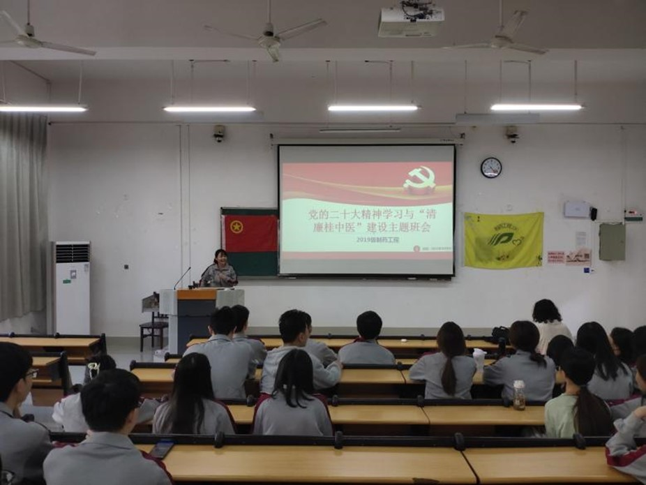 药学院2019级制药工程专业学生结合党的二十大精神开展“清廉桂中医”主题班会