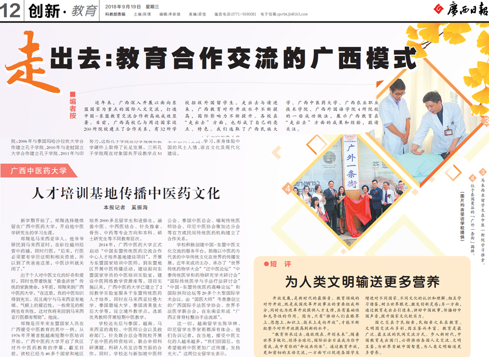 【广西日报】beat365官方网站:人才培训基地传播中医药文化