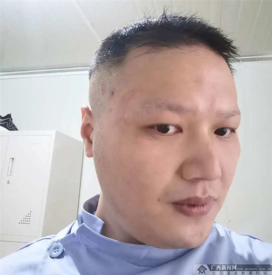 长时间佩戴护目镜,李咏翔的鼻梁上压出了水泡。广西新闻网通讯员 李佳慧 供图