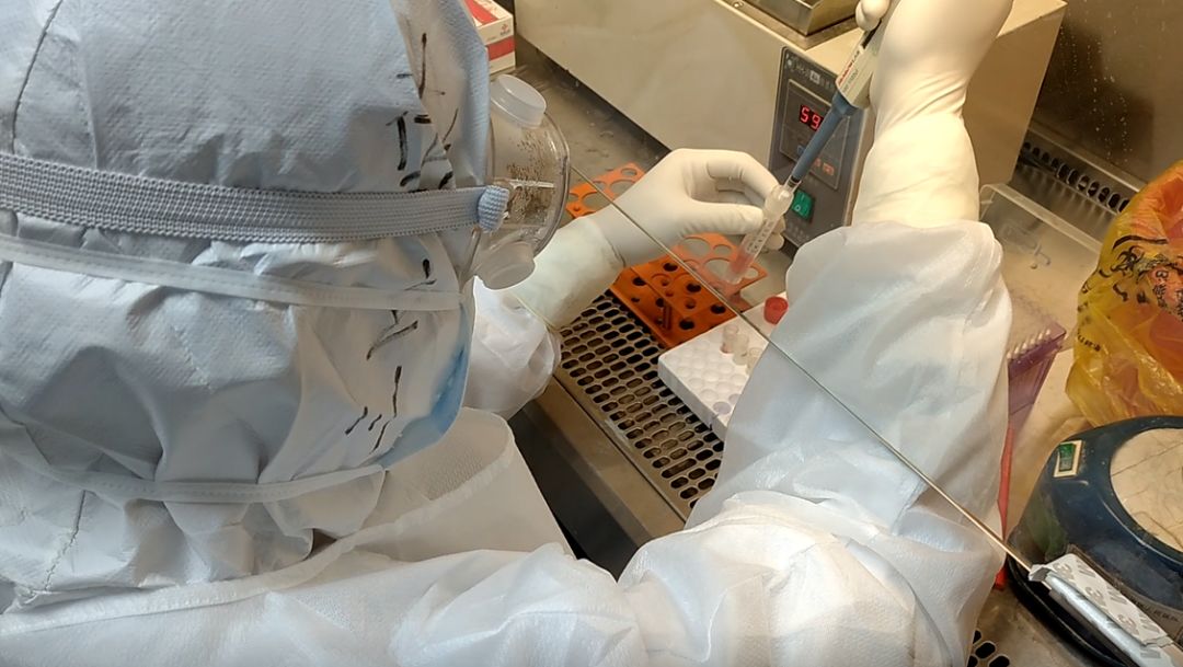 赖立川口中的“力所能及”,并非一件简单的事。就拿病毒核酸检测来说,要经过核酸提取、核酸扩增两大步骤。核酸提取就是将患者的样本进行灭活后,放入相应核酸提取仪中,然后将标本中的微量核酸提取出来;核酸的扩增,通俗地讲,就是将病毒基因序列不停地进行复制,在2-3个小时内,将微量的病毒核酸复制放大数十亿倍,便于核酸检验结果的分析。因为新冠病毒传染性强,所以从接收样本那一刻开始,检验医师就是离新型冠状病毒最近的“战士”,工作中必须全副武装、三级防护,还需要做到精、准、稳,因为一不小心就可能形成气溶胶,给自己带来更高的风险,同时可能污染安全柜内其他标本,导致样本之间交叉污染,形成“假阳性”。
