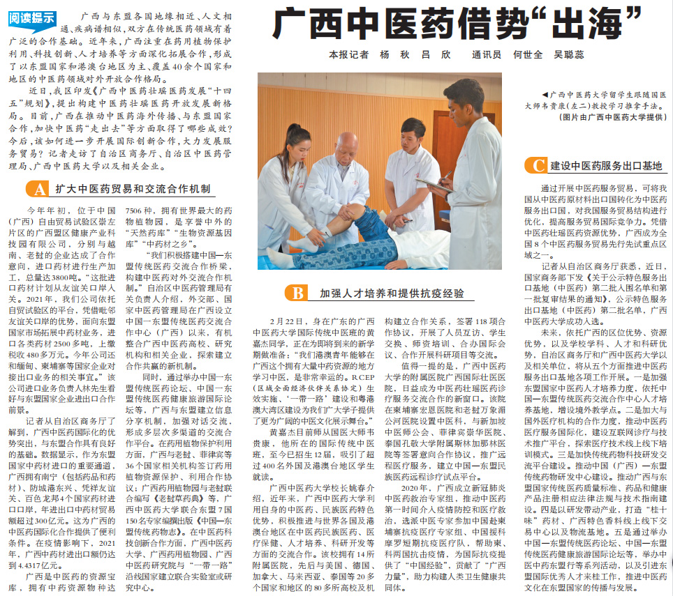 【广西日报】广西中医药借势“出海”