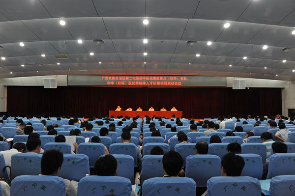 为了更好地贯彻落实自治区人民政府《关于加快中医药民族医药发展的决定》,实施壮瑶医药振兴计划,2013年6月16日,广西壮族自治区第二批基层中医民族医重点(扶持)专科和中(壮瑶)医优秀临床人才研修项目启动会议在南宁市召开。各市卫生局分管副局长,医政(中医)科长、有关单位主管领导和科室负责人、研修项目学员等参加了会议。