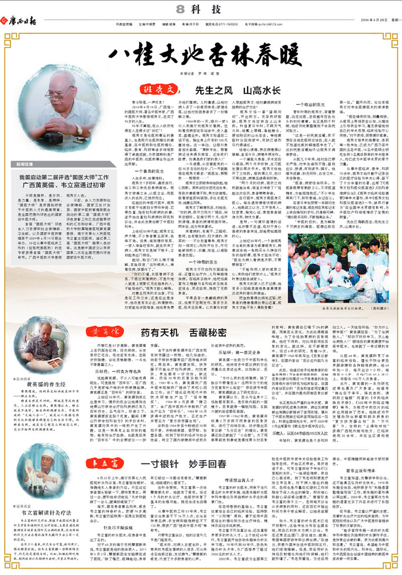 2014年4月14日,广西惟一的国医大师、著名中医学家、beat365官方网站教授班秀文,走完了95岁的人生。