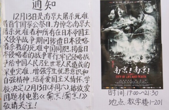 晚上19:00,校团委、校学生会举办了“回顾历史,缅怀先烈”的观影活动。通过观看《南京!南京!》,回顾了77年前的那段历史。透过影片,同学们更加 深入的认识到国家崛起、民族复兴的紧迫性和重要性。纷纷表示会牢记南京大屠杀的深刻历史教训,珍惜现今来之不易的和平生活,以史为鉴,面向未来。
