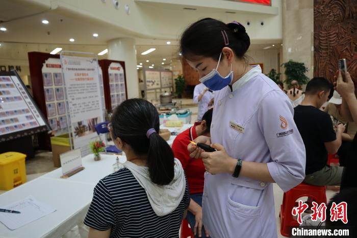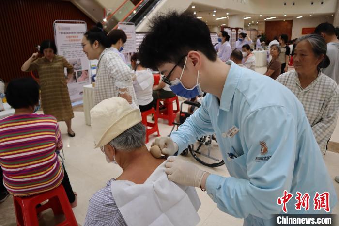 5月10日,广西国际壮医医院举行壮瑶医护理技术推广活动,一名年轻护士正在为患者进行壮医药线点灸治疗。 朱淑雨 摄
