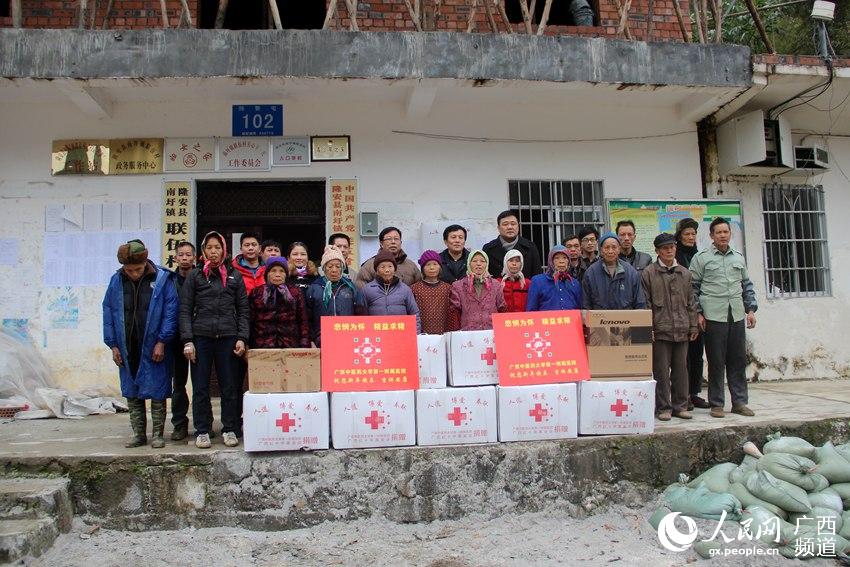 此次慰问,beat365官方网站及第一附属医院、附属瑞康医院等单位部门共为隆安县8个扶贫村80户贫困家庭送去了温暖。(何世全)