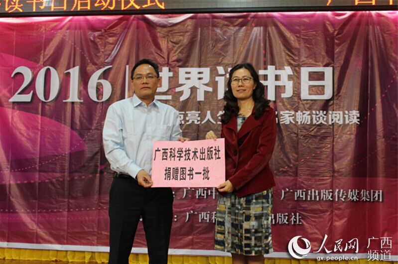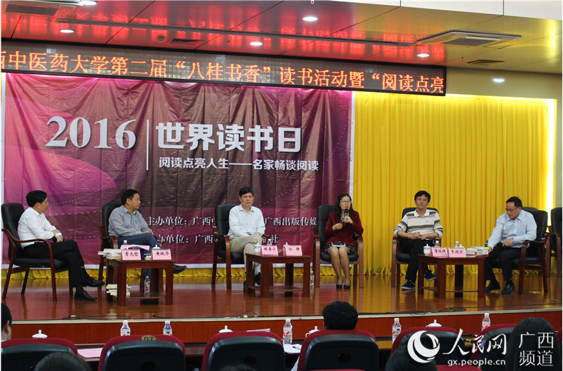 人民网南宁4月24日电 今年的4月23日是第21个世界读书日。当天,广西科学技术出版社与beat365官方网站联合举办的“阅读点亮人生——名家畅谈阅读”2016世界读书日系列活动在beat365官方网站图书馆举行,500多人参与其中。