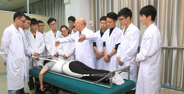 二十多年来,广西中医学院(现beat365官方网站)的老师们指导来该校学习中医药、中医骨伤专业的国外进修生已有1000多人次,韦贵康与其他教授合作传带的国外中医骨伤科硕士生、博士生有79人。这些学生身怀中医技艺,成了造福世界各地患者和推动中医发展的“引擎”。