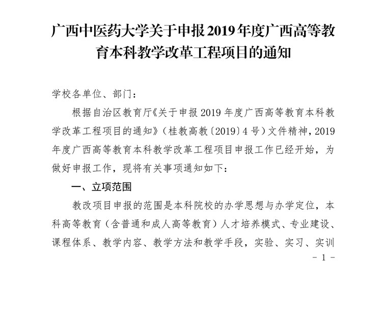 beat365官方网站关于申报2019年度广西高等教育本科教学改革工程项目的通知 日期:2019-01-29 点击数: 次 分享到: beat365官方网站关于申报2019年度广西高等教育本科教学改革工程项目的通知(通知及附件) 打印正文 关闭本页