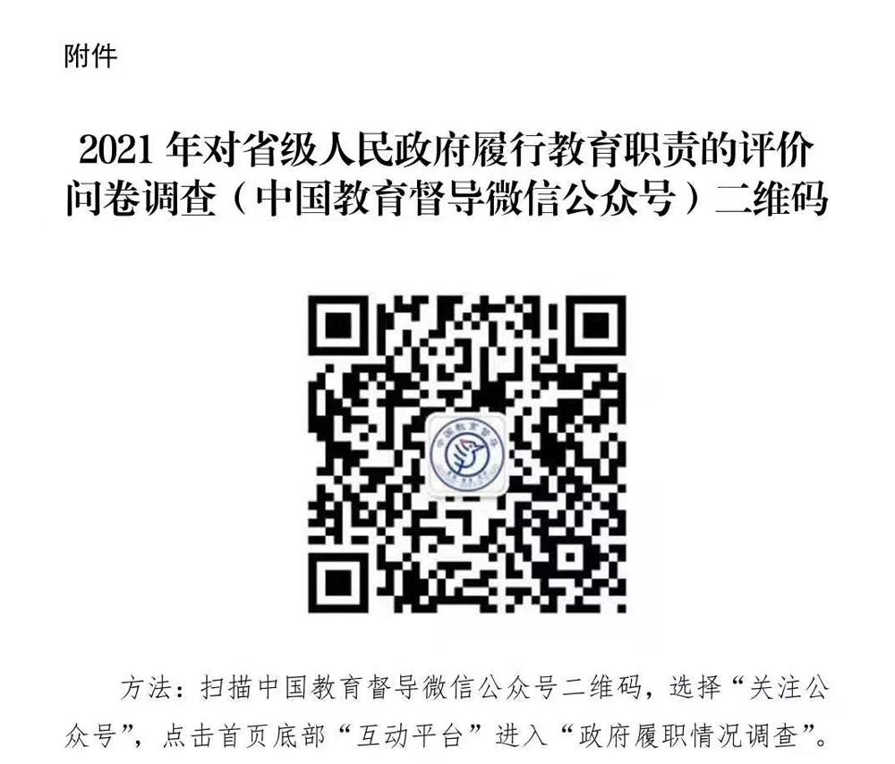 2021年对省级人民政府履行教育职责的评价问卷调查(中国教育督导微信公众号)二维码