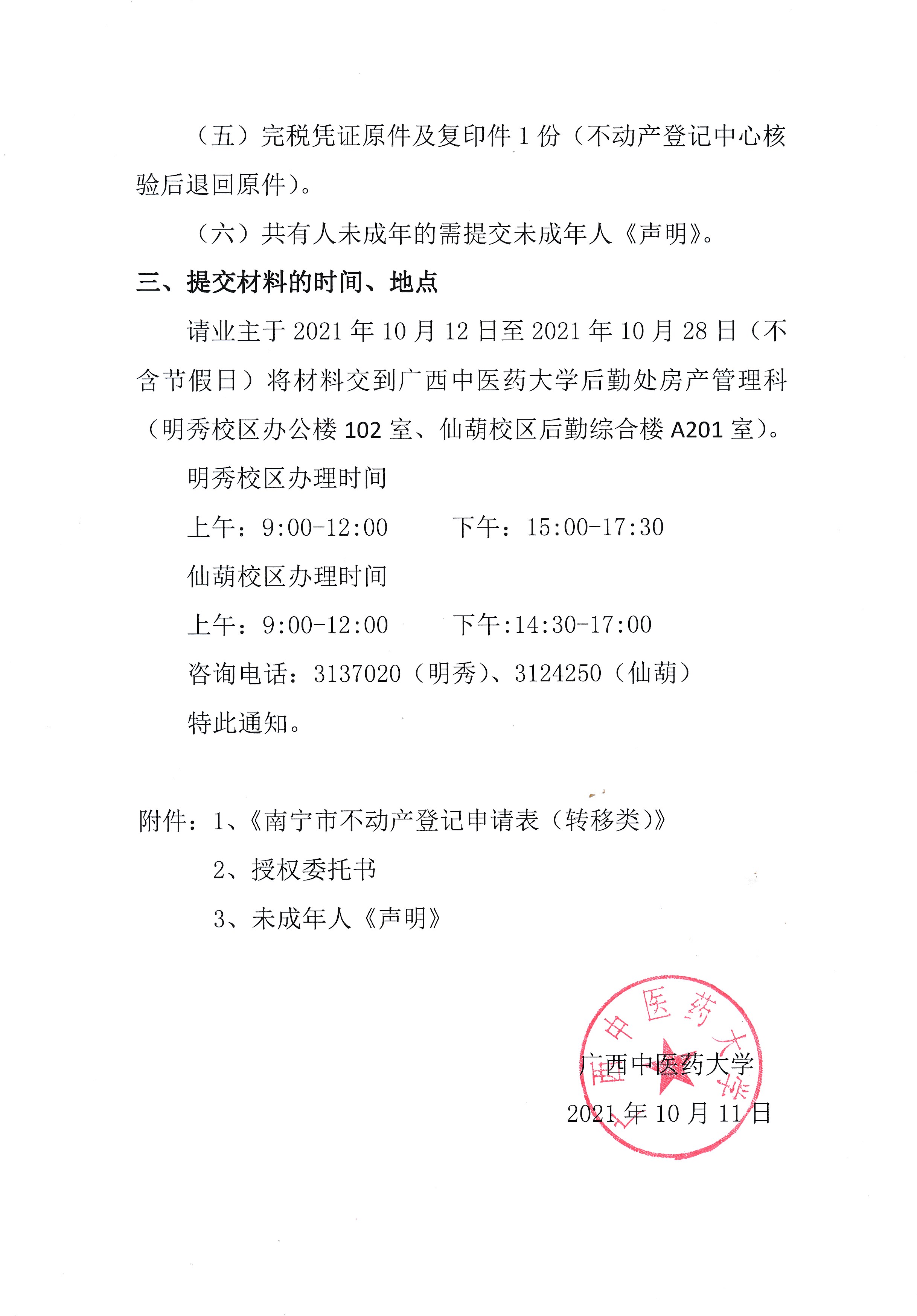 关于提交beat365官方网站仙葫校区职工住宅小区不动产权证办理材料的通知(第二批) 日期:2021-10-12 点击数: 次 分享到: 附件1.南宁市不动产登记申请表(转移类)空白表.pdf附件2.授权委托书.docx附件3.未成年人(声明).docx 打印正文 关闭本页