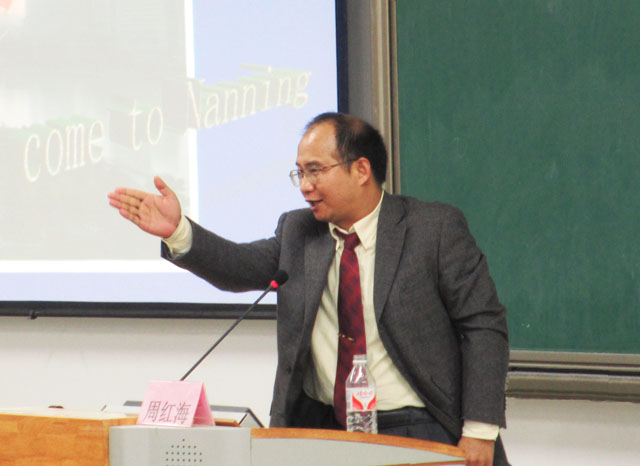 周红海教授用简短的时间,将中医骨伤在广西的发展足迹和现状进行了概括,对中医骨伤学的特色及其发展进行了幽默风趣的讲解,博得同学们的阵阵欢笑,激起了同学们对中医骨伤的兴趣和热情。在讲座接近尾声时,同学们十分积极地提问了有关骨伤学的各种问题,周红海教授都一一地进行了详细的回答。讲座在精彩的师生互动中圆满结束。