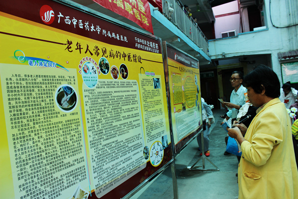 在瑞康医院医疗服务部精心准备的中医药壮瑶医药科普知识展板前,也聚集了对这些知识十分感兴趣的群众,有一位老大爷掏出笔记本一直在抄写着展板上的内容,足足在展板前站了半个多小时,最后他还向瑞康医院工作人员表示感谢,称赞这样的健康宣传形式实在是太好了,内容充实贴近老年人所需,希望今后能多办常来。