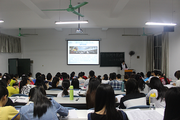 11月为beat365科技文化活动月,为彰显瑞康临床医学院在科技文化活动中的特色,紧跟时代步伐,深入领会李克强总理提出的“互联网+”行动计划精神,同时调动学院同学参加第二课堂的积极性,2015年11月22日晚,瑞康临床医学院团总支、学生会在明秀校区西A—8教室成功举办“互联网+医疗”学术讲座。瑞康临床医学院信息宣传部夏哲璇老师为主讲人,学院近200名学生积极参加本次讲座。